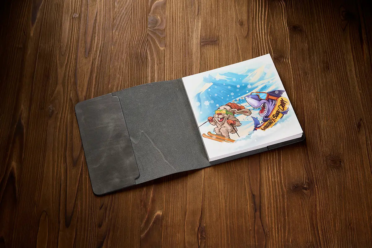 Kılıfın gri rengi; Palandöken’in sert ikliminden, Erzurum’un gri havasından ilham alır. Ön yüzün sağ alt kısmında yer alan üç boyutlu Palandöken dağ kabartması bu coğrafyayı temsil ederken, üst bölümde sıcak baskı ile uygulanan kar taneleri teması Erzurum’un iklimsel karakterine gönderme yapar. Kılıf, 19 × 19 cm özel ölçü defterlerle uyumludur. Kapalı ölçüleri 20,5 x 21,5 cm’dir.
